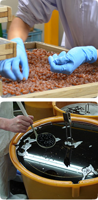 当社では「手作りの味』にこだわっています。そのため製品製造工程のなかで多くの部分は手作業にて行っています。